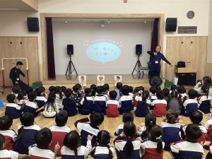11月21日に、にっこりキッズキャラバンがありました。大阪府民共済の方が来てくれ、紙芝居や体操などをして楽しんで参加しました。